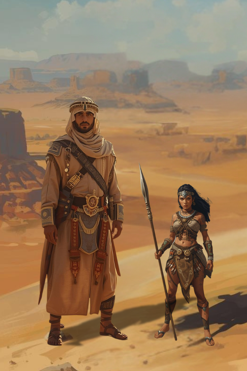 Female Yunni Khar Tain next to human Dhamari near the Scorched Barrens.